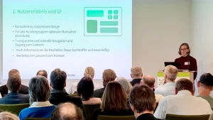 Nach den Anreizen aus fremden Projekten für die eigenen Aufgaben erhielten die Teilnehmer im Anschluss Einblicke in zwei aktuelle Themen, die die Fachverlagsbranche bewegen.
